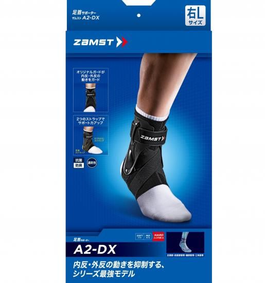 足首の内反・外反の抑制に「オリジナルガード」と「足底ストラップ」、「Xストラップ」の3つのパーツで足首をしっかり固定します。