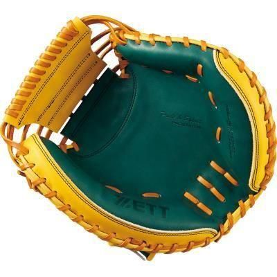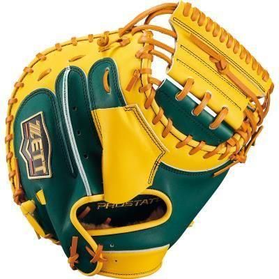 ツートンカラーで高級感あふれるプロステイタスシリーズキャッチャーミット。操作性が高い縦型スタンダードバックスタイルの森選手モデルのコンパクトタイプ。